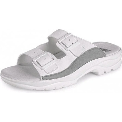 Pantofle s nastavitelnými předními páskami, podešev na klínku. materiál: svršek 2 mm mikrovlákno podrážka jednohustná PU stélka: vepřová kůže Vhodné: gastro, zdravotnictví,...