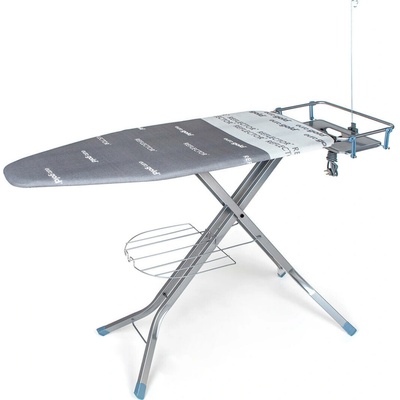 Žehlicí prkno Professional, kovová deska Mash, rozměry 130x48cm, podložka 10mm, elektrická zásuvka, rukávník, linen rack, variabilní odkladač na parní žehličku, galvanizovaná...