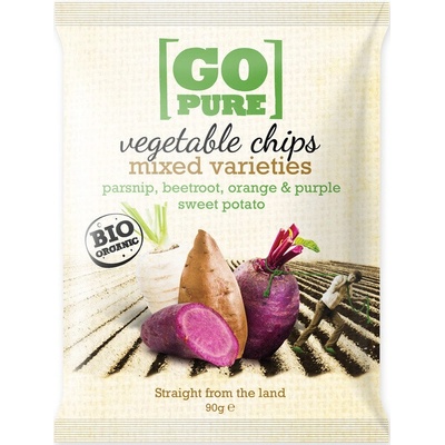 Chipsy zeleninové BIO GO PURE jsou křupavé plátky ze směsi kořenové zeleniny – červené řepy, mrkve, pastináku a batátů – smažené na slunečnicovém oleji a jemně solené mořskou...