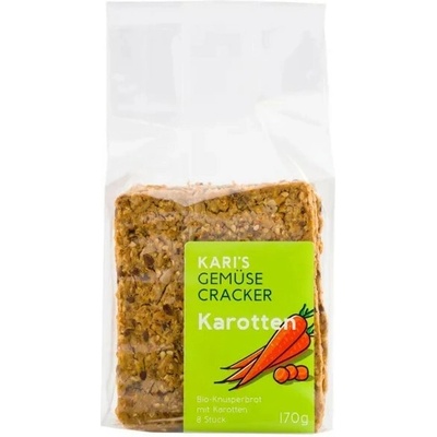 Zeleninové krekry mrkvové Složení: 22 % mrkev*, celozrnné pohankové vločky*, ovesné vločky*, kukuřice*, slunečnicová semínka*, lněná semínka*, sezam*, pohanková mouka*,...
