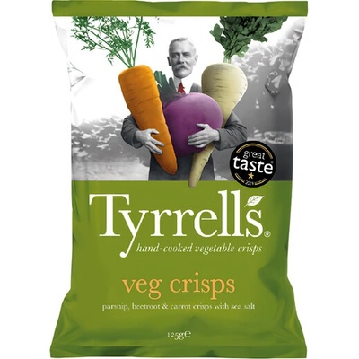 -- Tyrrells Chips zeleninové 125 g.Zeleninové chipsy Tyrrells nabízejí křupavou směs plátků červené řepy, pastináku a mrkve. Barevná a chutná alternativa klasických brambůrek,...