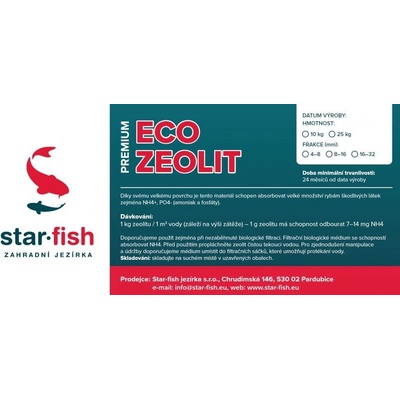 Podporuje dlouhodobé přírodní čištění vody Absorbuje čpavek, fosfor a dusíkaté sloučeniny Neutralizuje kyselou vodu a pohlcuje její zápach Pond Zeolit...