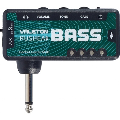 Rushead Bass je praktický baskytarový sluchátkový zesilovač s dobíjením 5V Li-ion baterie přes USB a výkonem až pět hodin na jedno dobití, Aux in vstupem pro nerušené jamování...