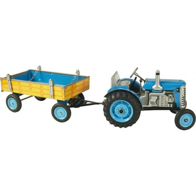 Model Traktor ZETOR s přívěsem, disky plastové modré KOVAP 0395/39502 Tradiční plechová hračka z výrobní řady veteránů a zemědělských strojů Pohyb modelu zajišťuje unikátní...