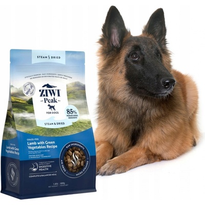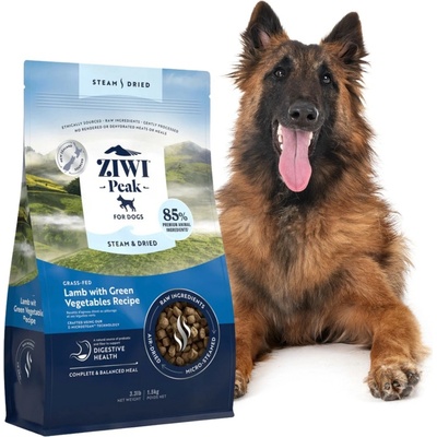Ziwi Peak Steam&Dried Jehněčí maso se zelenou zeleninou pro psa 1,5 kg Krmivo je vyrobeno z eticky získaného syrového jehněčího masa ze zelených pastvin Nového Zélandu se směsí špenátu, kapusty, zelených fazolí a kořene čekanky, aby podpořilo zdraví trávicího systému....