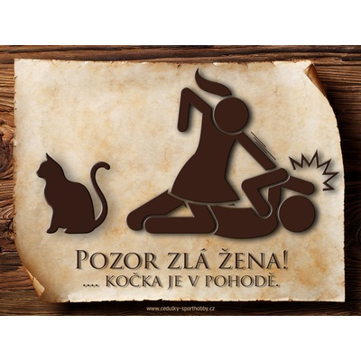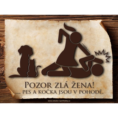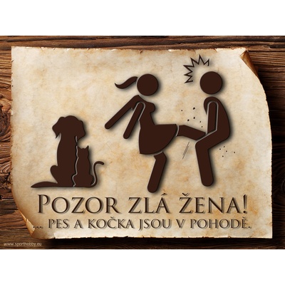 Vtipná cedulka s nápisem "Pozor zlá žena ..." 4. Velikosti těchto cedulek jsou 15x11,25 a 20x15 a 26,7x20 cm. Cedulky jsou tištěny sublimační technologií Grawerton přímo na...