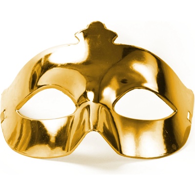 Zlatá karnevalová škraboška, tvrdý plast Plastová škraboška dobře tvarovaná, výborně sedí na obličeji, vzadu na zavázání.