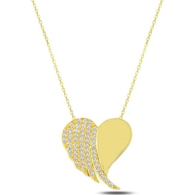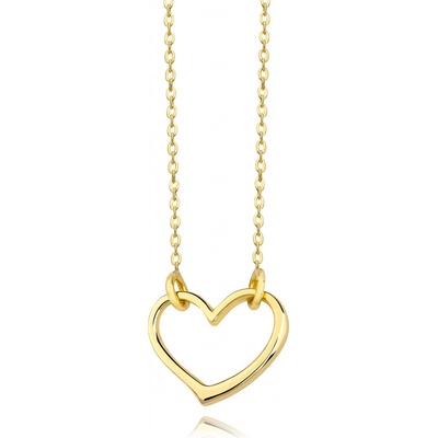 Stříbrný náhrdelník 925 je vyroben ve zlaté barvě. Skládá se z řetízku z jednoduchých oválných oček spojených vertikálně a přívěsku ve tvaru srdce. Srdce má vystouplá a šikmá...
