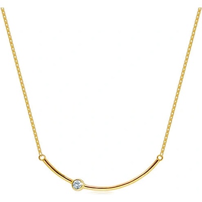 Zlatý 585 náhrdelník, lesklá hladká kontura se vsazeným blýskavým zirkonem, perový kroužek.