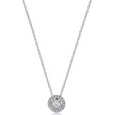 Náhrdelník z bílého 14K zlata - jemný řetízek, přívěsek v podobě malého jednoduchého kruhu s kulatým třpytivým zirkonem čiré barvy.