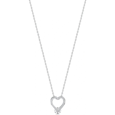 Symbolický náhrdelník, který je vyrobený z bílého 14kt zlata. Šperk tvoří jemný řetízek a pohyblivý přívěsek ve tvaru srdíčka, které je doplněné zářivými zirkony. Náhrdelník má...