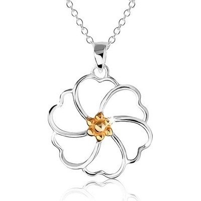 Stříbrný náhrdelník 925, lesklý obrys květu s aplikací ve zlatém odstínu uprostřed, karabinka.
