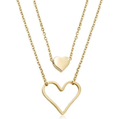 Šperky eshop Ocelový zlaté barvy malé plné srdíčko velký obrys srdce dva řetízky R01.11