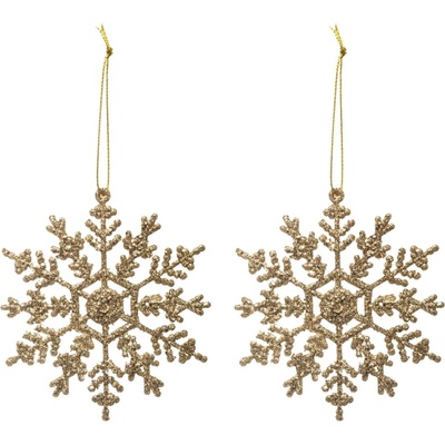 Klíčové vlastnosti produktu Atmosphera Třpytivé přívěsky ve tvaru sněhových vloček, 2 ks, zlaté Vánoční ozdoby Atmosphera jsou zhotoveny z plastového materiálu Lesklý a třpytivý...
