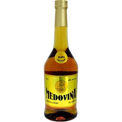 Zlatá medovina 18% Zlatá medovina je lahodný nápoj zlatavé barvy a čisté medové chuti. Jedná se o český výrobek jemné chuti, který je velice oblíbený u žen. Při výrobě se používá moderní technologia, a proto má medovina neomezenou trvanlivost.
