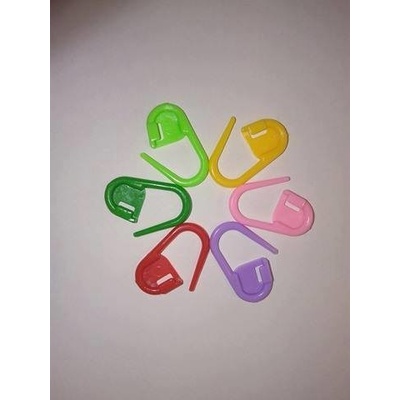 balení 10 kusů, mix různých barev, velikost 22 mm x 10 mm Plastové značkovače ve tvaru zavíracích špendlíků, určené k označení míst v pletenině, kde například přidáváme nebo ujímáme.