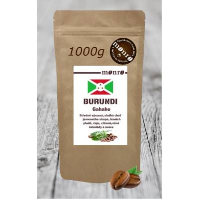 Skvělá Burundská 100% Arabika Gahahe s chutí javorového sirupu, lesních plodů, citrusů a s vůní čokolády a ovoce. Zrnková káva čerstvě pražená v pražírně Káva Monro. 1000g