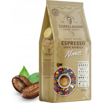 TEMPELMANN Nomos Espresso Káva Zrnková 1 kg. Tempelmann Nomos Espresso je káva káva, která byla profesionálně vypálena k dokonalosti. Průměrný stupeň vyhoření extrahuje esenci...
