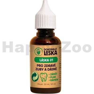 DOKONALÁ LÁSKA 01 pro zdravé zuby a dásně psů 50ml Přípravek pro dentální hygienu psů Specifikace produktu - přírodní přípravek pro zdravé zuby a dásně u psů - působí...
