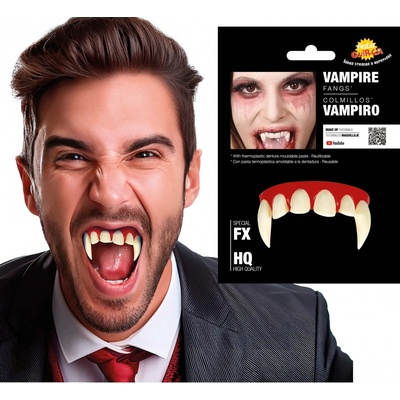 Falešné zuby Upír s termoplastickou tvarovatelnou pastou, která zajišťuje dobrou přilnavost na zuby - znovupoužitelné.