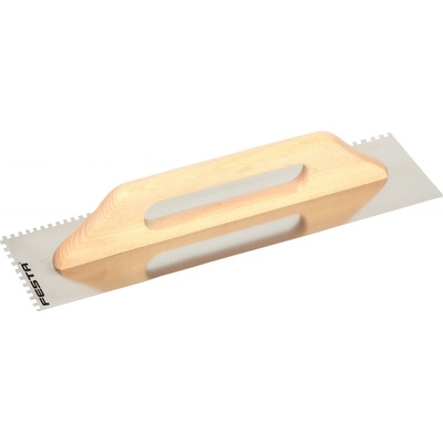 Hladítko nerezové zubové FESTA 500x130 mm, zub e8, s dřevěnou rukojetí, tl.plechu 0,7 mm. Používá se zejména k nanášení lepidel pod obklady a dlažby, dále pak k nanášení stěrek,...