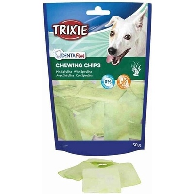 Ocenění, lahodná, křupavá svačinka pro psa Denta Fun Spirulina Chewing Chips z kůže s přídavkem spiruliny, od TRIXIE. - ze surové kůže - doporučeno pro zvířata s...