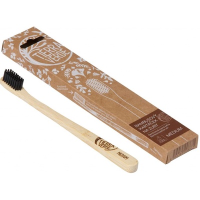 Bambusový kartáček medium Ekologický bambusový kartáček na zuby se střední tvrdostí štětin. FSC bambus, ergonomická rukojeť a veganské složení bez BPA. Bambusový kartáček...