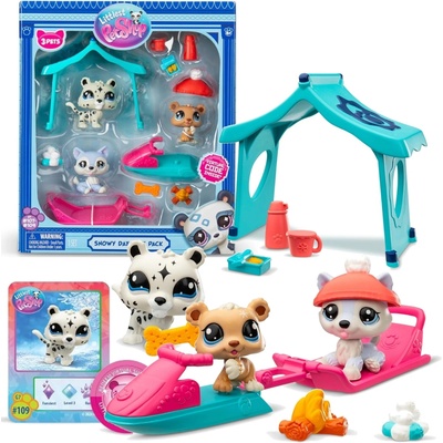 Objevte zimní svět se sadou Littlest Pet Shop Snowy Day Play Pack od Hasbro. Tři roztomilí mazlíčci s hlavou bobblehead, spousta doplňků pro zimní dobrodružství a virtuální kód...