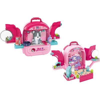 \nNemocnice zvířecí v batohu pejsek. Rozměry 50x35x30 cm. Velikost pejska 17 cm. Batoh je otevírací ze dvou stran. Balení obsahuje zařízení zvířecí ordinace, figurku pejska a příslušenství: misku, lah