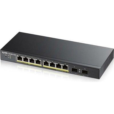 ZyXEL GS1900-10HP v2; Inteligentní konfigurovatelný PoE+ přepínač nabízí 8x GbE RJ-45 port a 2x SFP slot.