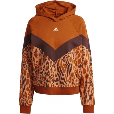 Dámská mikina adidas. Stylová mikina upoutá každého svým potiskem se zvěří. Je navlékaná přes hlavu a má kapuci s předním překřížením límce. Oranžový design je vyroben z bavlněného textilu a je prodyšná pro větší pohodlí.Tato mikina má snížený ramenní šev a netopýří...