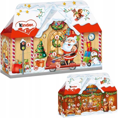 Kinder adventní kalendář Domek Adventní kalendář ve tvaru domečku. Obsahuje 2x Kinder figurku Mikuláše, 9x Schoko-bons, 9x mini vajíčko s mléčnou náplní, 3x kinder čokoláda a...