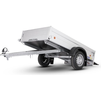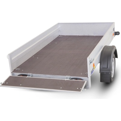 Nebrzděný přívěs s celkovou hmotností 750 kg. Ložná plocha 2270x1250x350 mm. Charakteristické je provedení s "V" ojí, plechové bočnice s Al-Zn úpravou, 13" kola, 7pólová...