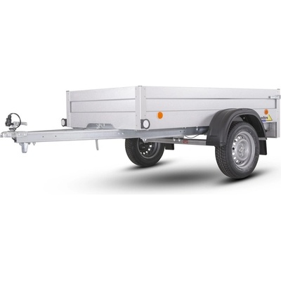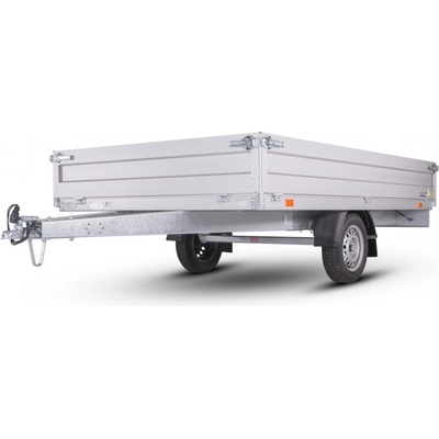 Jednonápravový, brzděný valníkový přívěs s koly vedle ložné plochy. Přívěs má hliníkové bočnice o výšce 350 mm a podlahu z voděodolné překližky. Zadní čelo přívěsu je sklopné....