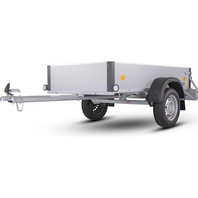 Odolný nebrzděný přívěs se svařovaným rámem s výztuhami pod podlahou a bočnicemi z pozinkovaného plechu. Ve standardní výbavě je zahrnuto: robustní svařovaný pozinkovaný rám...