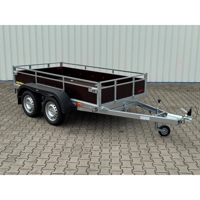 Odolný brzděný přívěs se svařovaným rámem s výztuhami pod podlahou a překližkovými bočnicemi. Ve standardní výbavě je zahrnuto: robustní svařovaný pozinkovaný rám pevná...