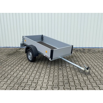 Jednonápravový, brzděný valníkový přívěs s koly vedle ložné plochy. Přívěs má hliníkové bočnice o výšce 350 mm a podlahu z voděodolné překližky. Zadní čelo přívěsu je sklopné....