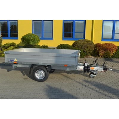 Dvounápravový, brzděný valníkový přívěs s koly vedle ložné plochy. Přívěs má hliníkové bočnice o výšce 350 mm a podlahu z voděodolné překližky. Zadní čelo přívěsu je sklopné. V...