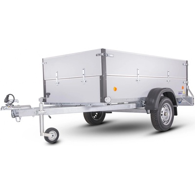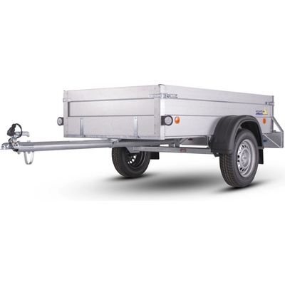 Nebrzděný přívěs s celkovou hmotností 750 kg. Ložná plocha 2650x1240x400 mm. Provedení s "V" ojí, plechové bočnice 400 mm s Al-Zn úpravou, 13" kola, 7pólová...