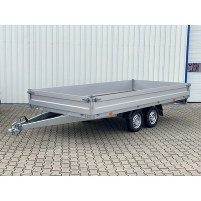 Odolný brzděný přívěs se svařovaným rámem s výztuhami pod podlahou a hliníkovými bočnicemi. Ve standardní výbavě je zahrnuto: robustní svařovaný pozinkovaný rám pevná V-oj...