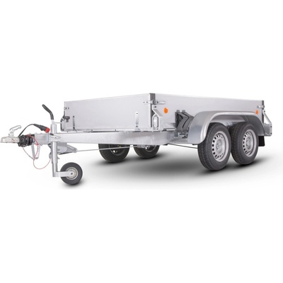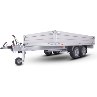 Odolný brzděný přívěs se svařovaným rámem s výztuhami pod podlahou a hliníkovými bočnicemi. Ve standardní výbavě je zahrnuto: robustní svařovaný pozinkovaný rám pevná V-oj...