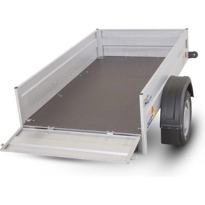 Jednonápravový, brzděný valníkový přívěs s koly vedle ložné plochy. Přívěs má hliníkové bočnice o výšce 350 mm a podlahu z voděodolné překližky. Zadní čelo přívěsu je sklopné....