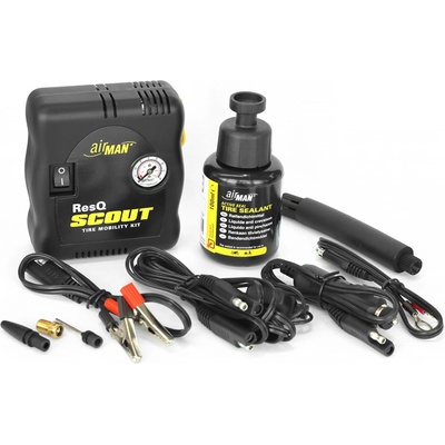 Opravná sada pneumatik AirMan ResQ Scout s kompresorem + náplň 100ml Lehká a malá opravná sada pro opravy pneumatik motocyklů, skútrů a čtyřkolek. Utěsňuje průpichy ostrým...