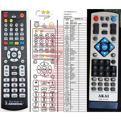 Náhradní dálkový ovladač AKAI HT993 - 100% náhrada 1:1 za originální dálkový ovladač. Ovladač je dodáván ve verzi značkového dálkového ovladače General POCKET (zobrazen vlevo)....