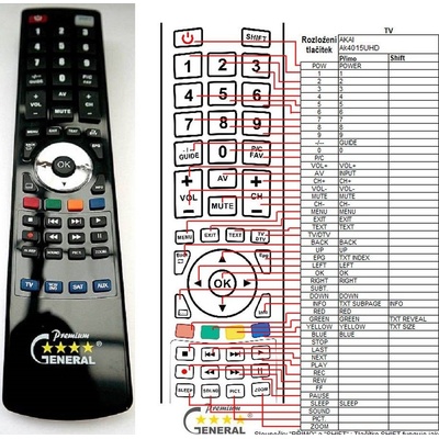 Náhradní dálkový ovladač Akai Ak4015UHD - 100procent náhrada za originál. Zachovány všechny funkce původního ovladače. Nejde o univerzální ovladač, ale o ovladač, který je...