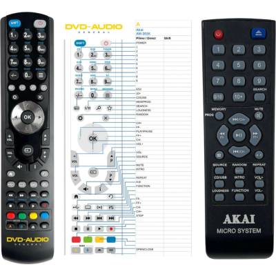 Náhradní dálkový ovladač AKAI APR-500 (APR500) - 100% náhrada 1:1 za originální dálkový ovladač. Dálkový ovladač je určen pro tyto modely AKAI:APR-500, APR-500BL, APR-500RD,...