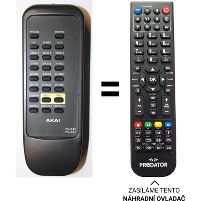 Náhradní dálkový ovladač pro AKAI RCA57, RCA67, AM57, AM67. NEPOTŘEBUJE KÓDY