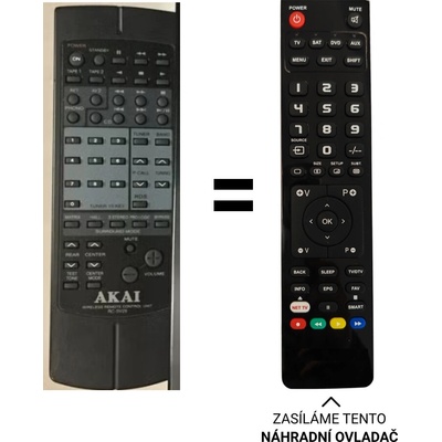 Náhradní dálkový ovladač AKAI RC-S4000 (RCS4000) - 100% náhrada 1:1 za originální dálkový ovladač. Dálkový ovladač je určen pro tyto modely AKAI:RC-S4000, RCS4000. (Nemusí zde...