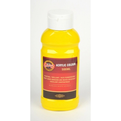 Barva akrylová 500ml primární žluť 0205. Jedná se o vodou ředitelné disperzní barvy vysoké kvality. Lze je nanášet štětcem, válečkem nebo špachtlí na jakýkoliv nemastný podklad....