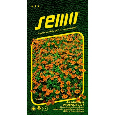 \nTagetes tenuifolia Cav. (syn.Tagetes signata Bartl.) / Aksamietnica drobnokvetá\nODRŮDA: Aksamitník drobnokvětý - oranžový 0,2g (kód 9536)Popis:Letnička s jemně vykrajovanými listy používaná předevš